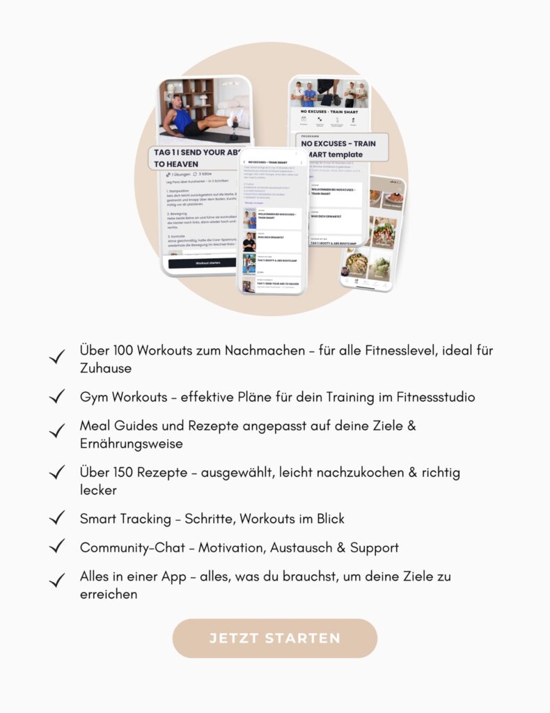 Alle Übungen und Workouts sind klar gekennzeichnet, ob sie für Schwangere geeignet sind. Generell haben wir die Trainings bewusst so ausgewählt, dass Mütter nach der Geburt ihren Körper schnell wieder in Form bringen können. Training ist generell ab 1,5 - 2 Monaten nach der Entbindung sehr förderlich.